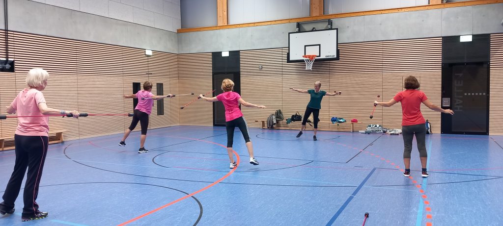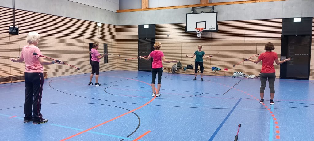 Unsere Übungsleiterin Moni hatte heute neue Fitnessgeräte dabei: Flexi-Bar.